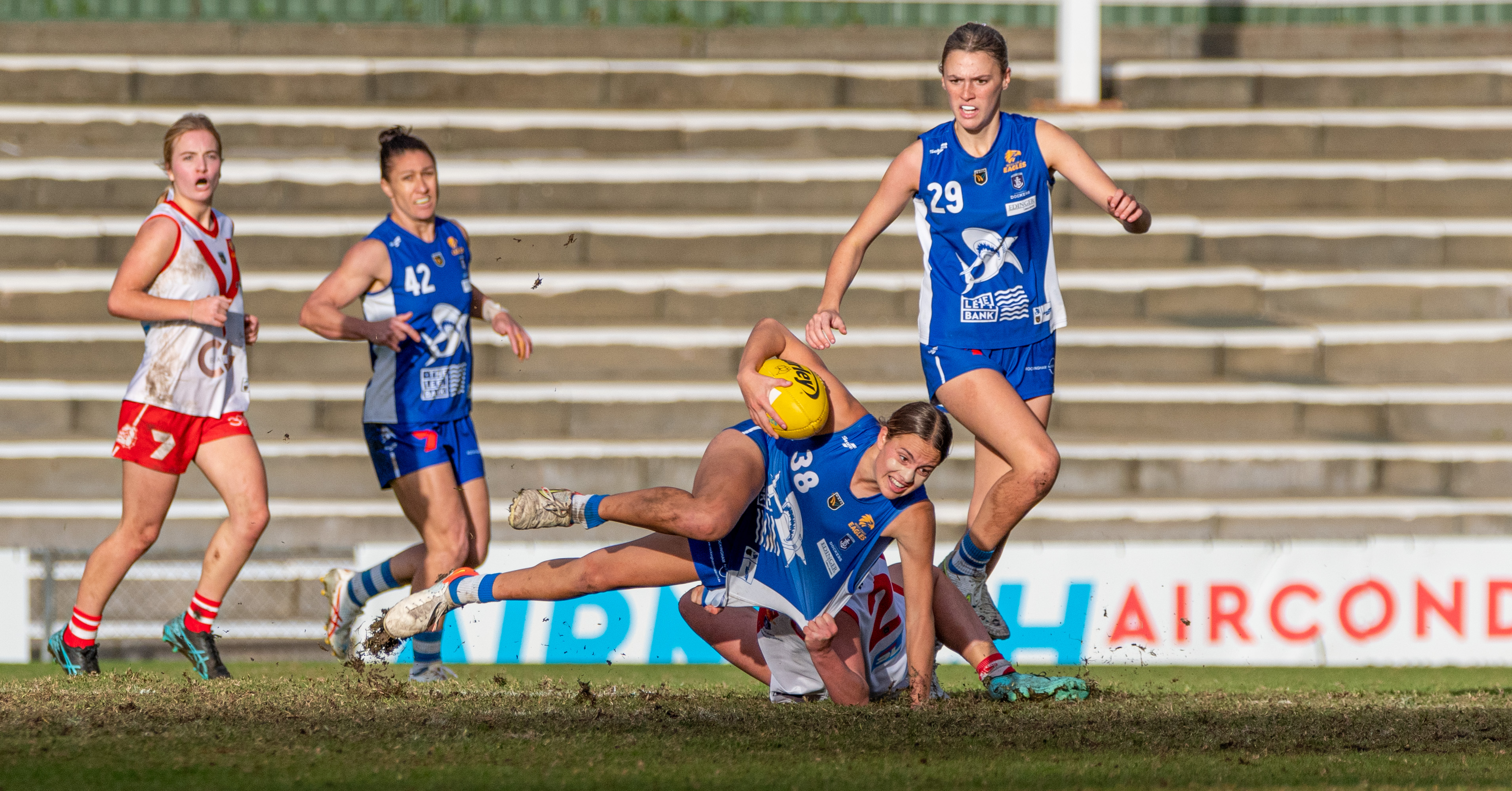 Sometimes its takes desperation and hanging on by the finger nails to do your job as a defender and prohibit a player from breaking away. The challenge for the photographer is to capture these moments.